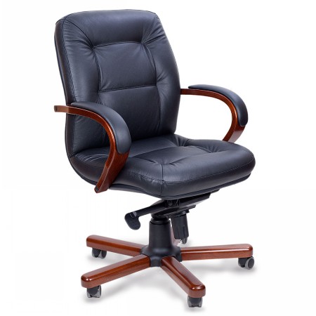 Кресло руководителя с плавными линиями и обтекаемыми формами, надежно поддерживает спину во время работы. Прочные подлокотники помогают удобно расположить руки, для повышения уровня комфорта сверху прикреплены мягкие накладки. Материал: натуральная кожа, задняя часть спинки – кожзам; Подлокотники кресел - шпонированная гнутоклеенная фанера, накладки кожаные; Основание: металлическое, накладки из массива бука; Мультиблок: механизм наклона с фиксацией в 4-х положениях; Регулировка жесткости качания под вес сидящего; Прорезиненные колеса; Газ-патрон 3-ей категории стабильности (DIN 4550 class 3), категория повышенной надёжности: газ-патрон выдерживает нагрузку в 200.000 циклов при динамической стендовой нагрузке в 80 кг. Минимальное давление, при котором срабатывает газ-патрон - 21,5 кг, максимальное - около 150 кг.