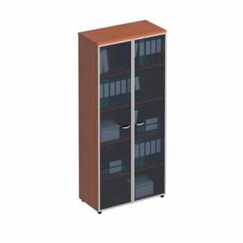Шкаф со стеклянными высокими дверьми в рамке.