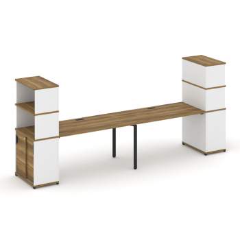 Толщины ЛДСП: Столешницы - 25 мм, царги - 18 мм. Кромка ПВХ: 2 мм по периметру. Цвета ЛДСП: Дуб Винченцо, Сандал Янтарный, Дуб Мали, Кобо. Сечение металлокаркаса (опоры): 50х25 мм. Цвета металлокаркаса и лючков: Черный, Белый, Антрацит, Серый, Латте, Капучино. По покраске изделий из металла (от 10шт) в любой цвет по RAL, обратитесь к вашему менеджеру. Столы устанавливаются на регулируемые опоры - М8. Кромка ПВХ толщиной 0,4мм и 2мм. С тыльной стороны все торцы обработанны кромкой 2мм. Опоры тумб: Труба 50х25, Цвет: Черный, Белый, Антрацит, Серый, Латте, Капучино, Н=30мм Цвета ручек: Белый, Черный, Антрацит Направляющие ящиков: Шариковые, полного выдвижения без доводчика L=350мм. Колеса мобильных тумб:усиленные, прорезиненные D=50мм Тип петель: С доводчиком