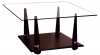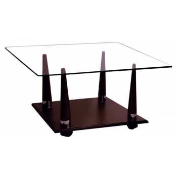 Полка стола выполнена из шпонированного мдф. Опоры: массив ценных пород древесины и вставки из хромированной стали. Цвета: венге, орех, вишня. Столешница: прозрачное стекло толщиной 8мм. Еврокромка. Все углы имеют радиус закругления, что уменьшает трамвоопасности. Наличие колесных опор делают стол более функциональным благодаря мобильности